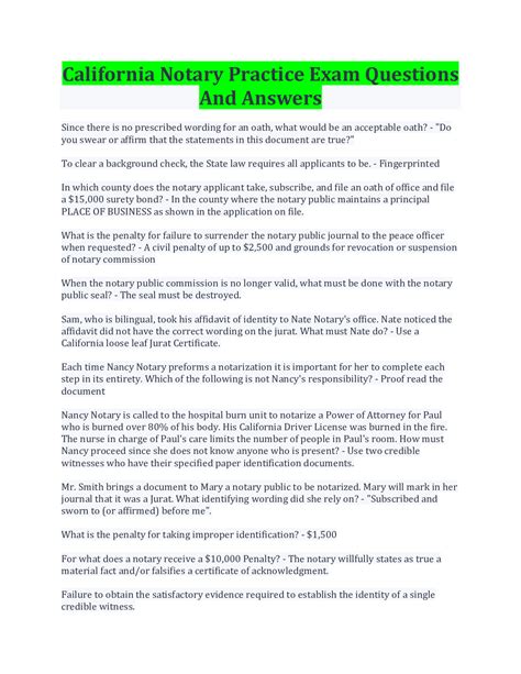 Online PDF NOTARY QUESTIONS AND ANSWERS CALIFORNIA Paperback ManyBooks